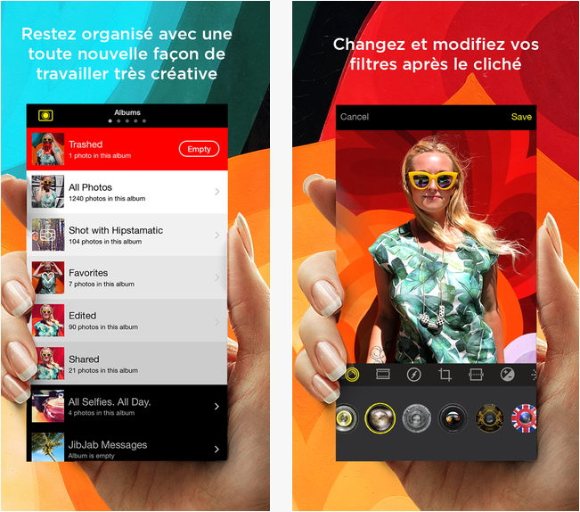 Avec la dernière mise à jour, Hipstamatic s’enrichit avec des fonctionnalités d’édition photo : filtres, textures, suppression de bruit… 12 modèles prédéfinis sont disponibles mais il est possible d’en créer d’autres totalement personnalisés. L’application est aussi compatible avec l’iPhone 6s : la fonctionnalité 3D Touch est supportée tout comme la prise en charge de l’appareil photo de 12 Mpx.