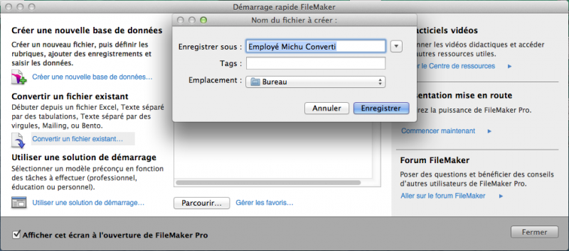 Enfin, terminons sur le dernier outil proposé par FileMaker, à savoir la conversion de fichier existant. Cette option permet à l’utilisateur de débuter depuis un fichier Texte, ou un fichier Excel. Si sur le papier, cela semble plutôt simple intéressant et simple, en réalité c’est un peu plus compliqué que cela. Effectivement côté utilisation, cette fonctionnalité présente l’avantage d’offrir une prise en main immédiate. L’utilisateur sélectionne le fichier à importer et le logiciel fait tout le reste, tout seul. En revanche, côté résultat, ce n’est pas le top. Pour tester cette fonction nous avons décidé d’importer en fichier Excel la fiche employé créée précédemment, et sincèrement ce fichier n’est pas adapté à cette manipulation. Comme on peut le voir ci-dessous, on retrouve bien la tabulation du fichier Excel demandé, néanmoins, la masse de textes empêchent une lisibilité optimale. Ainsi, nous recommandons personnellement cette option pour les documents composés principalement de chiffres et non de textes.